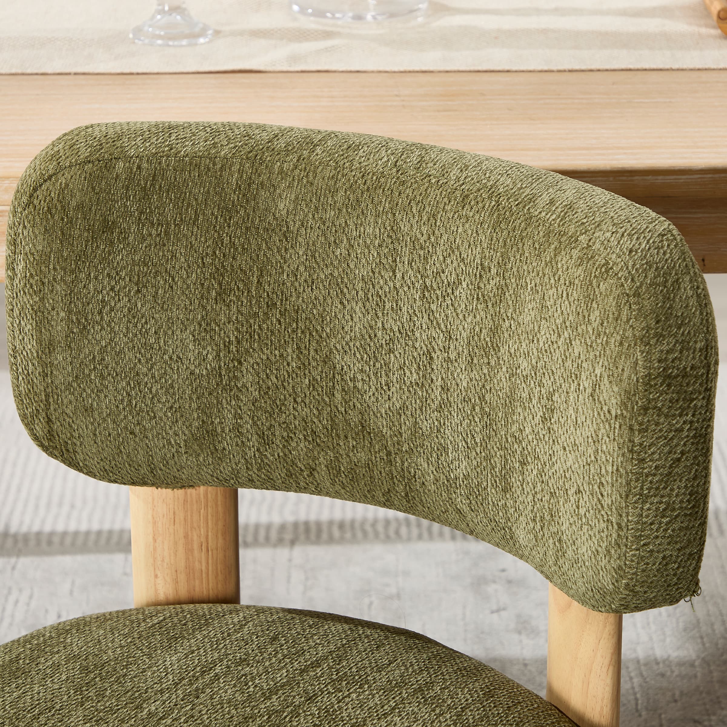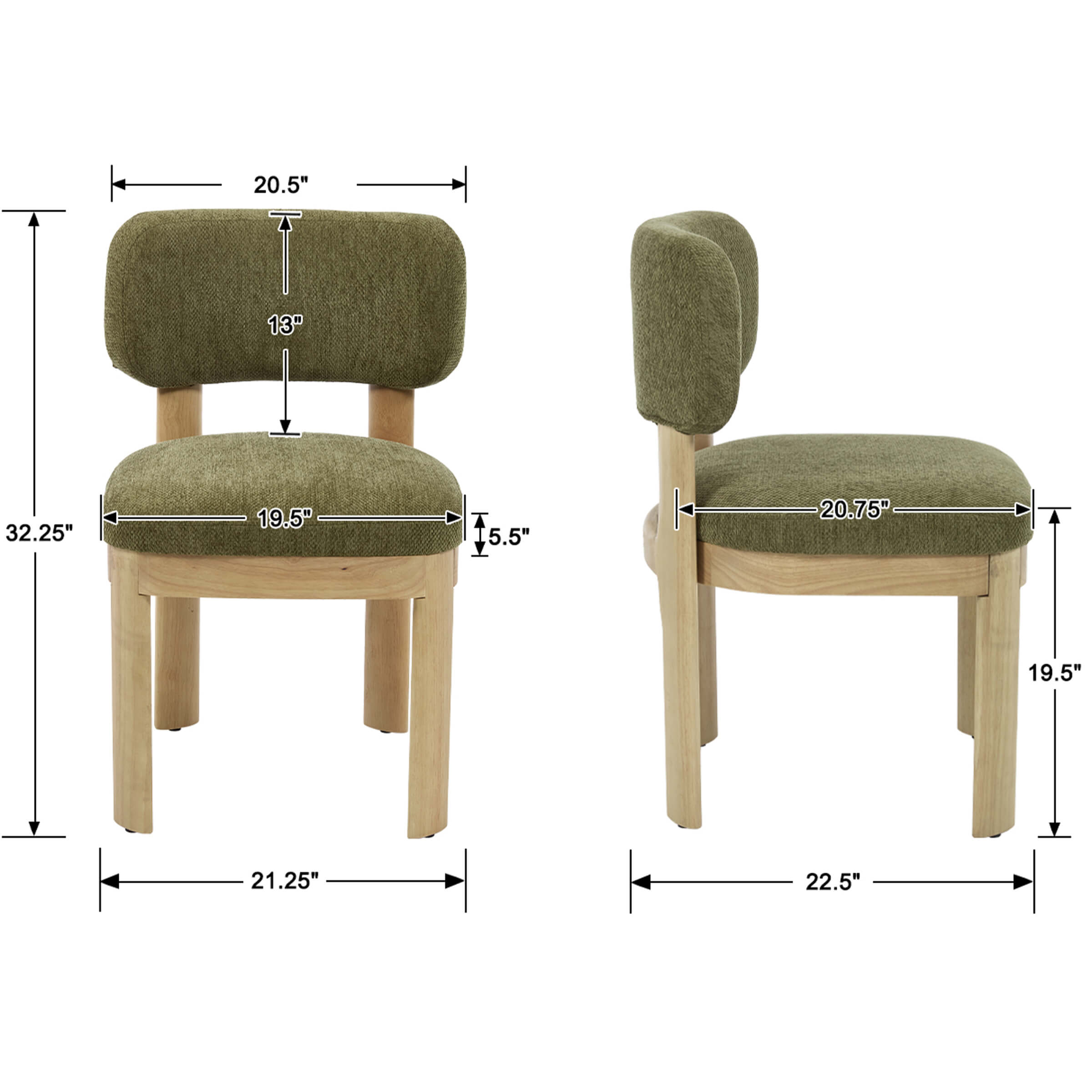 - Solid wood, armless frame with curved back for style and comfort.