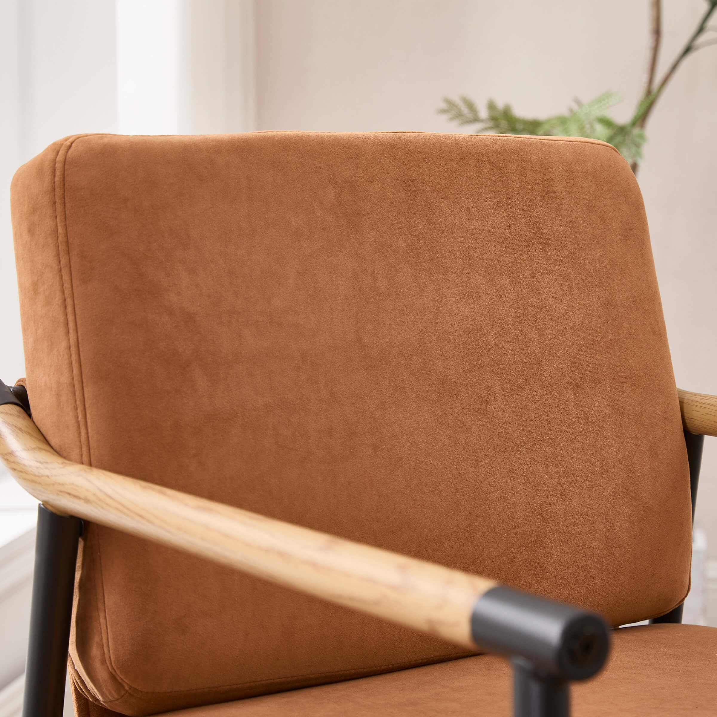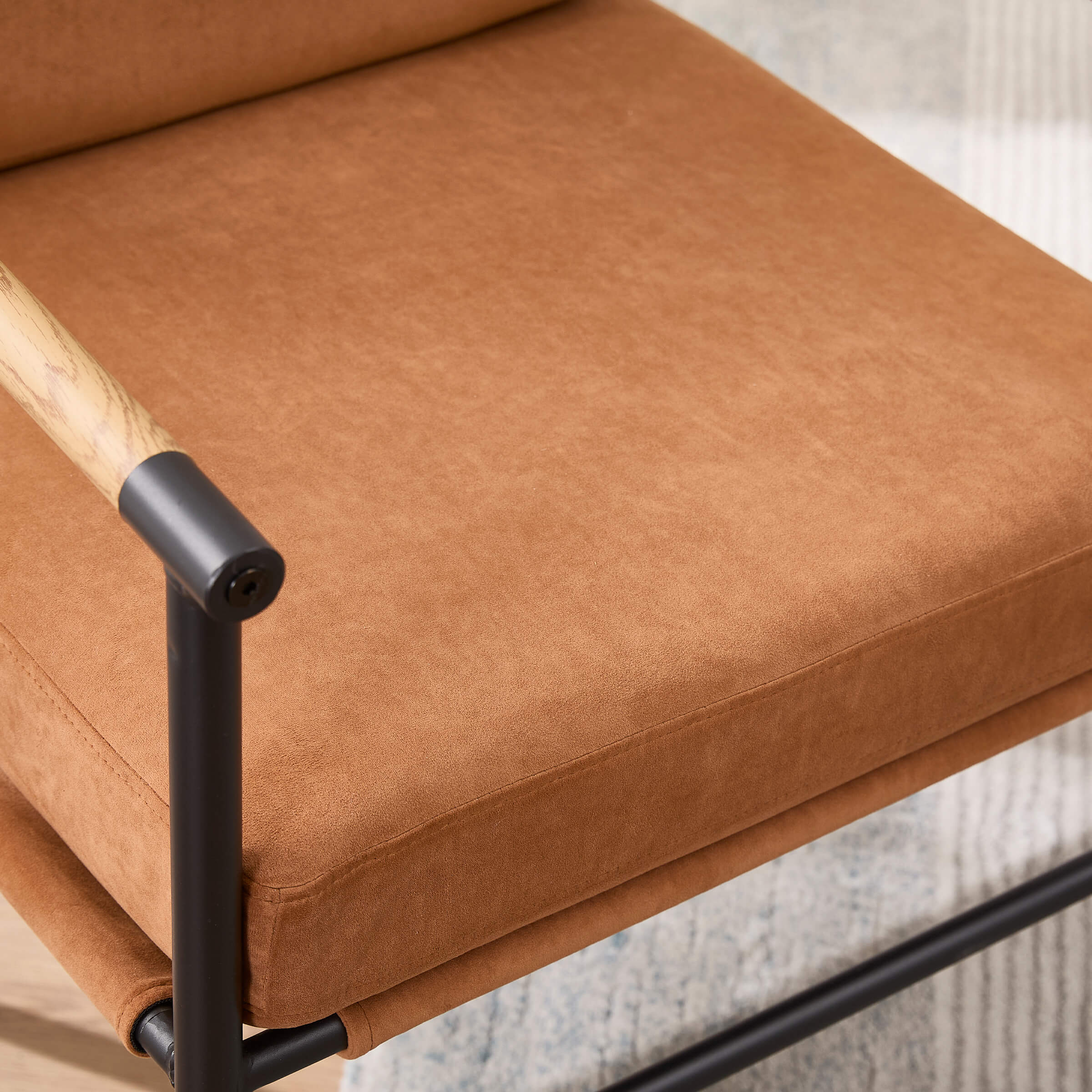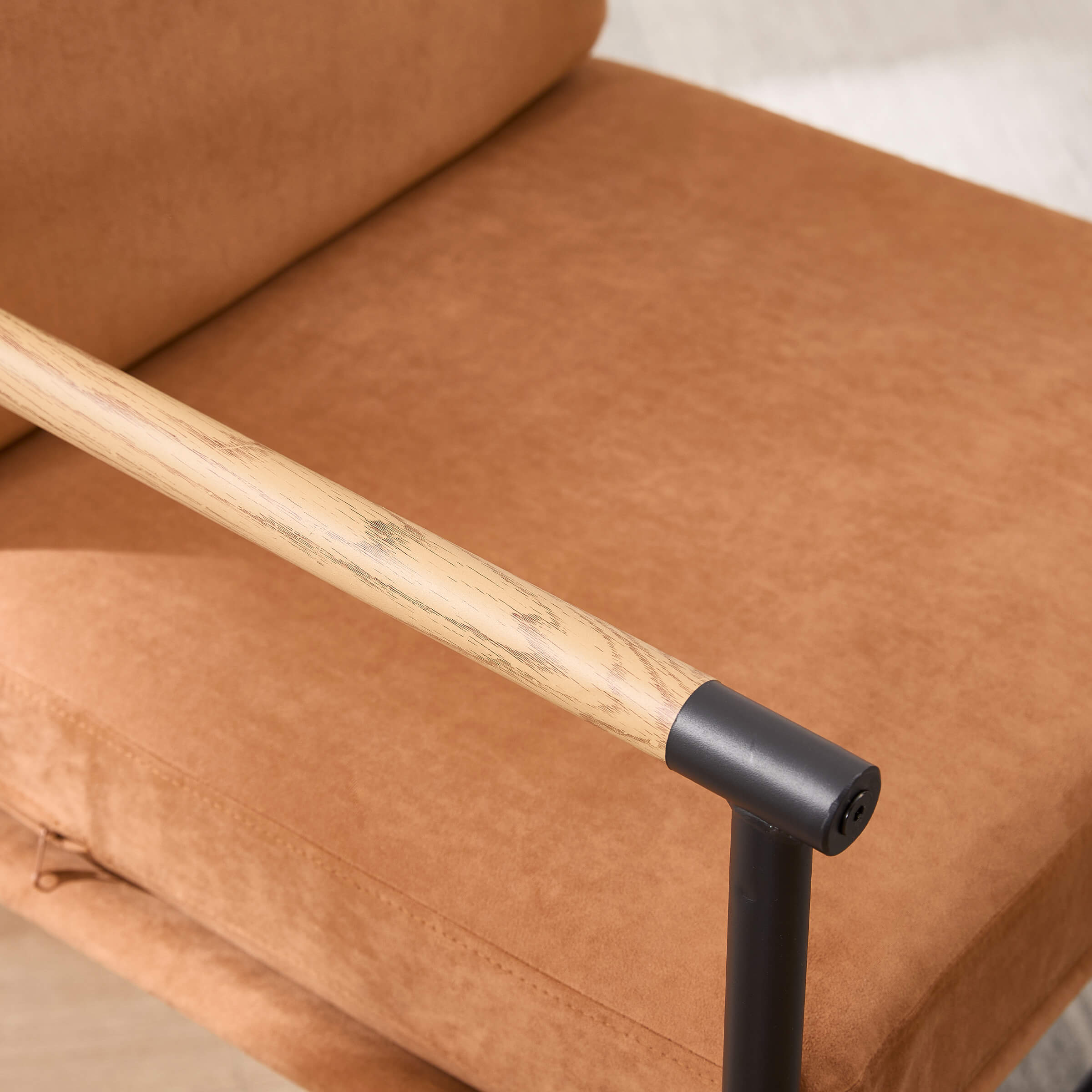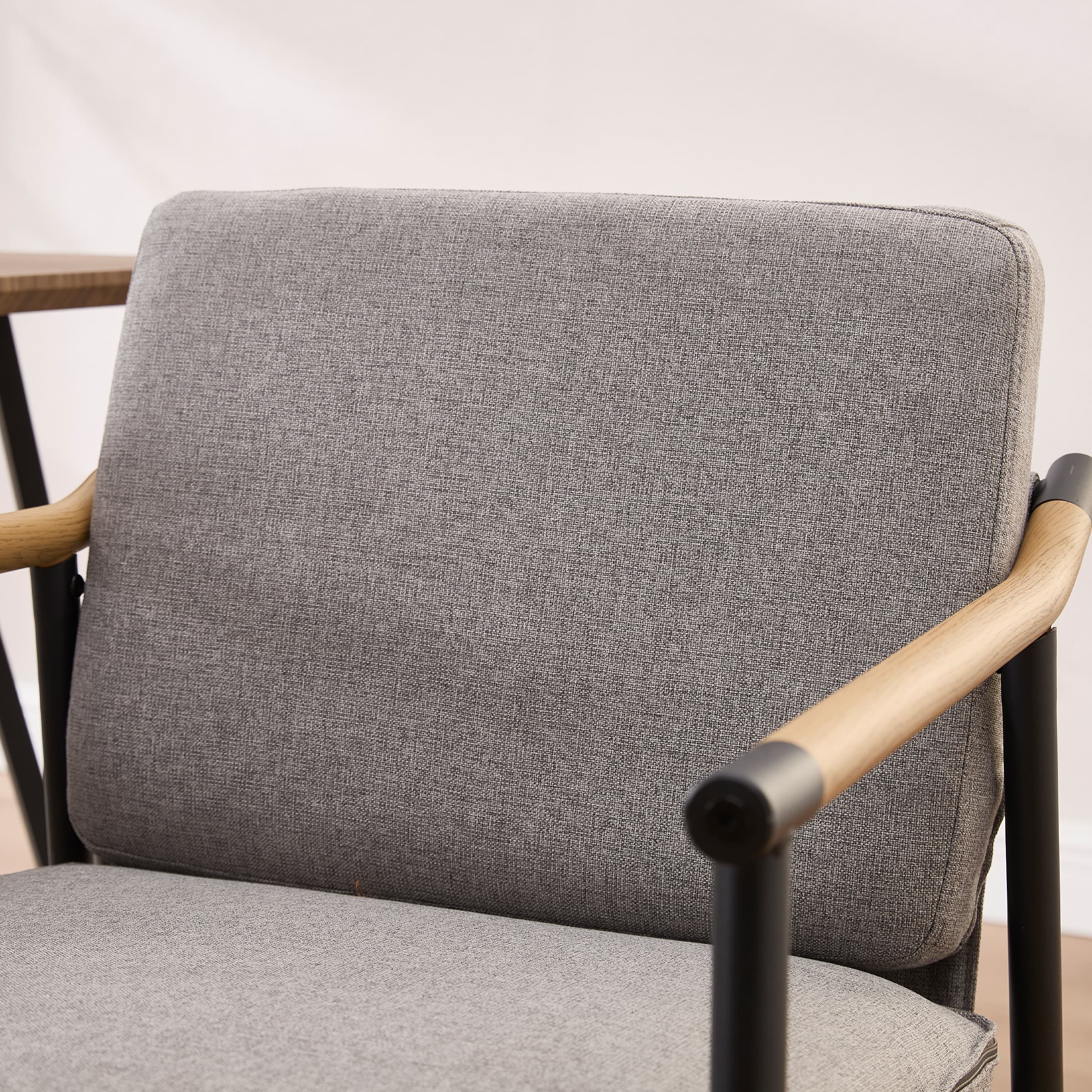 - Elegant wooden armrests with smooth curves provide stylish and comfortable arm support.
