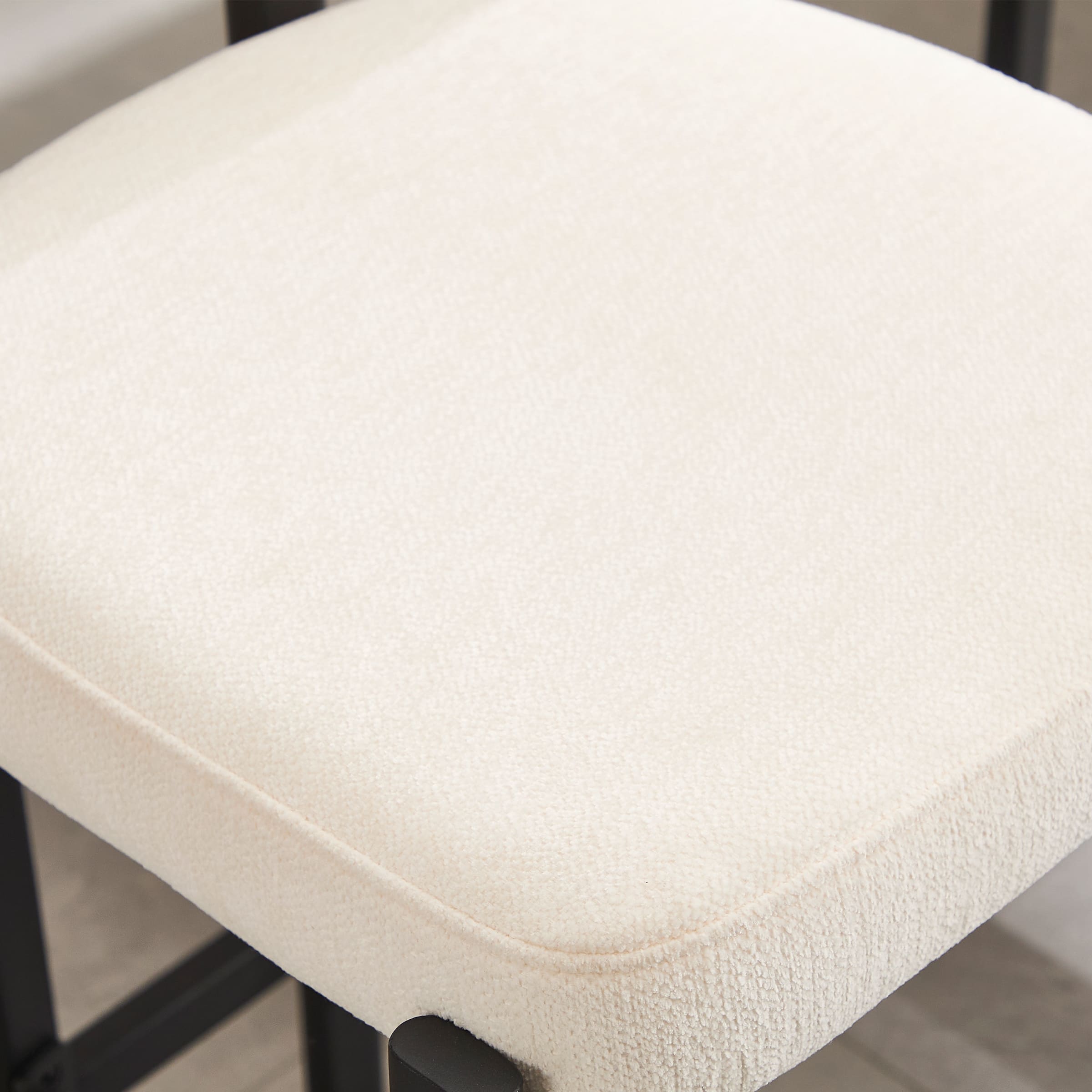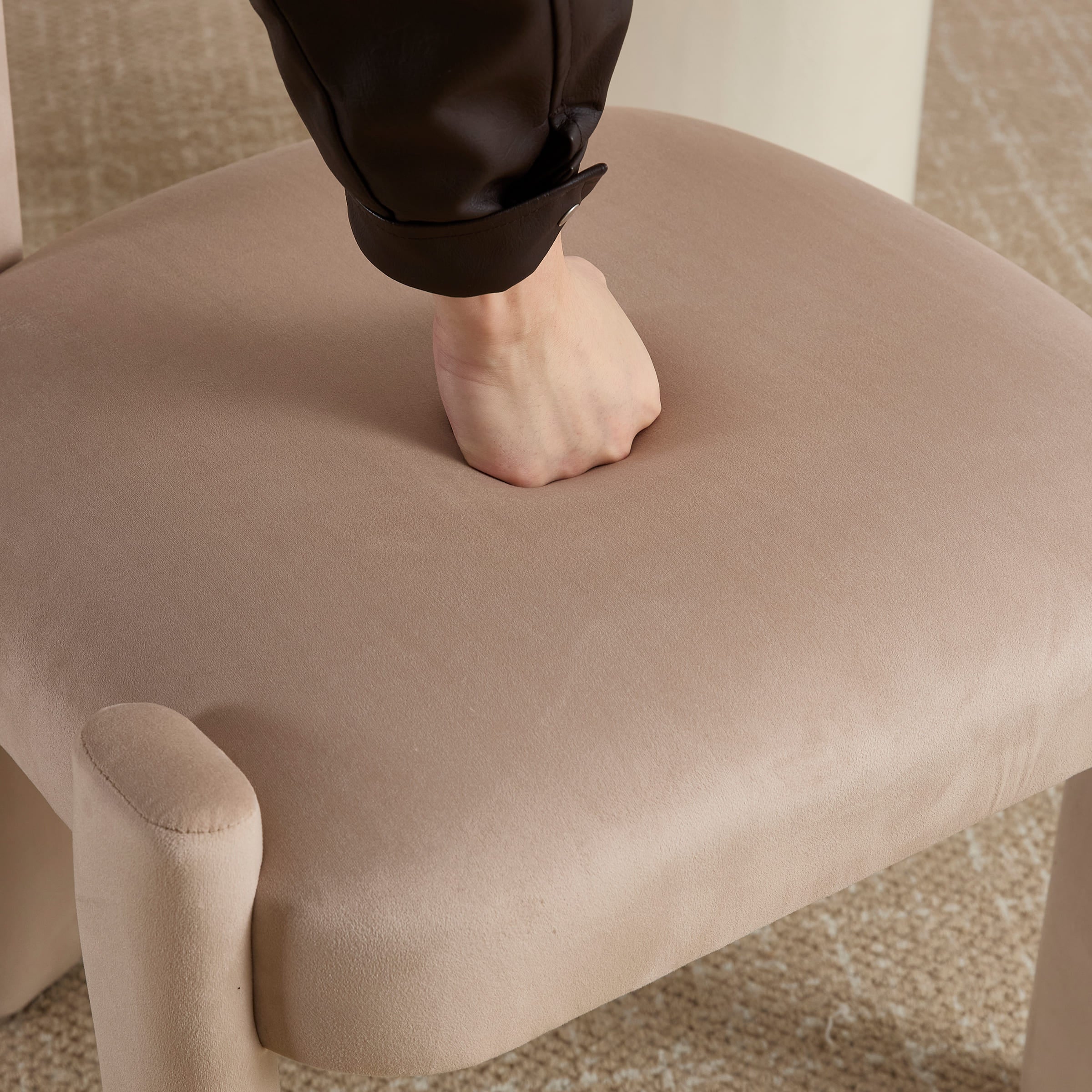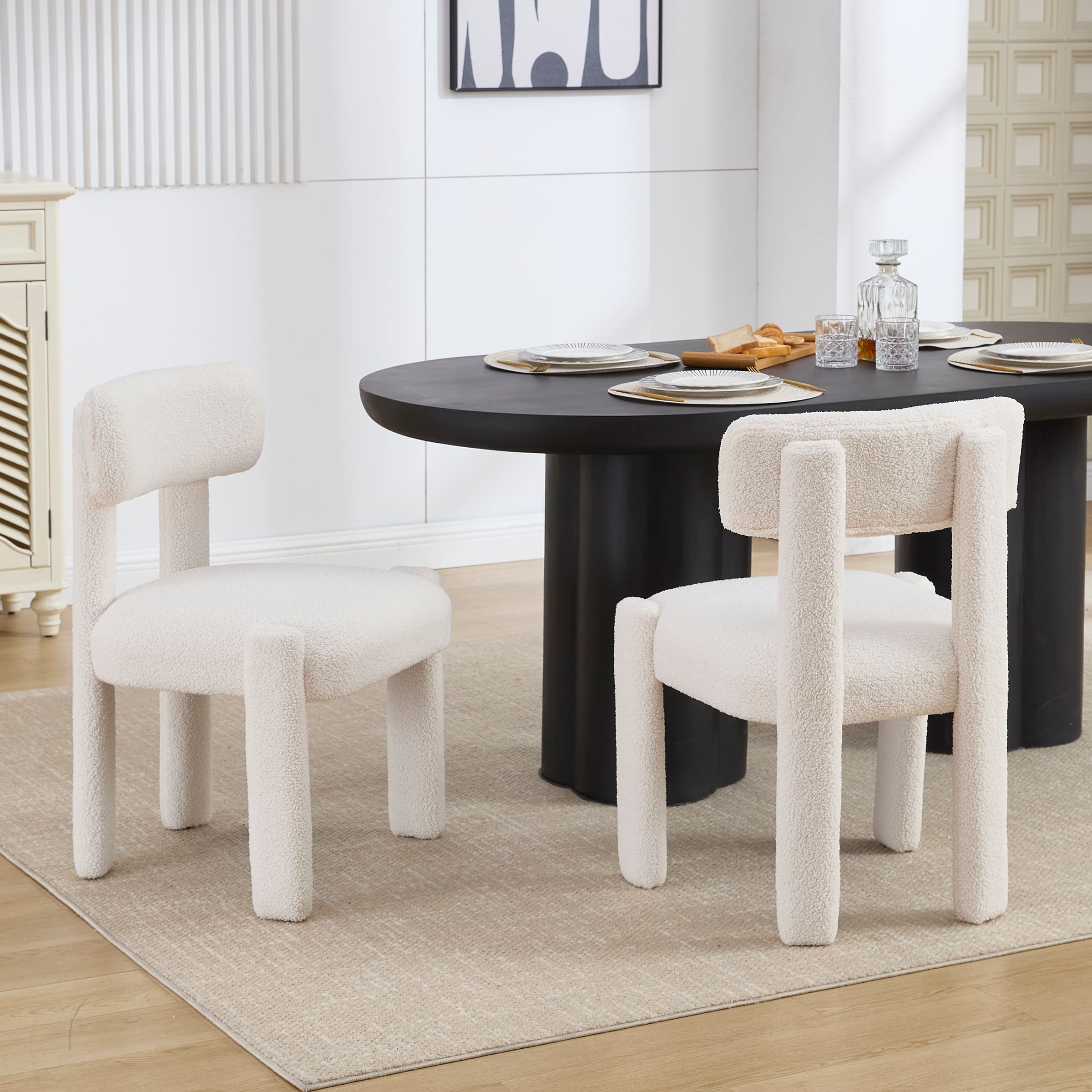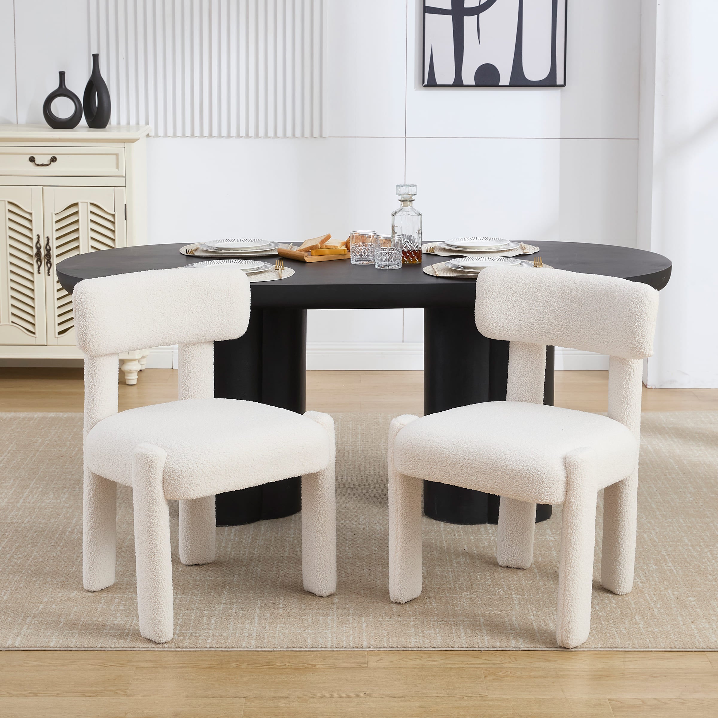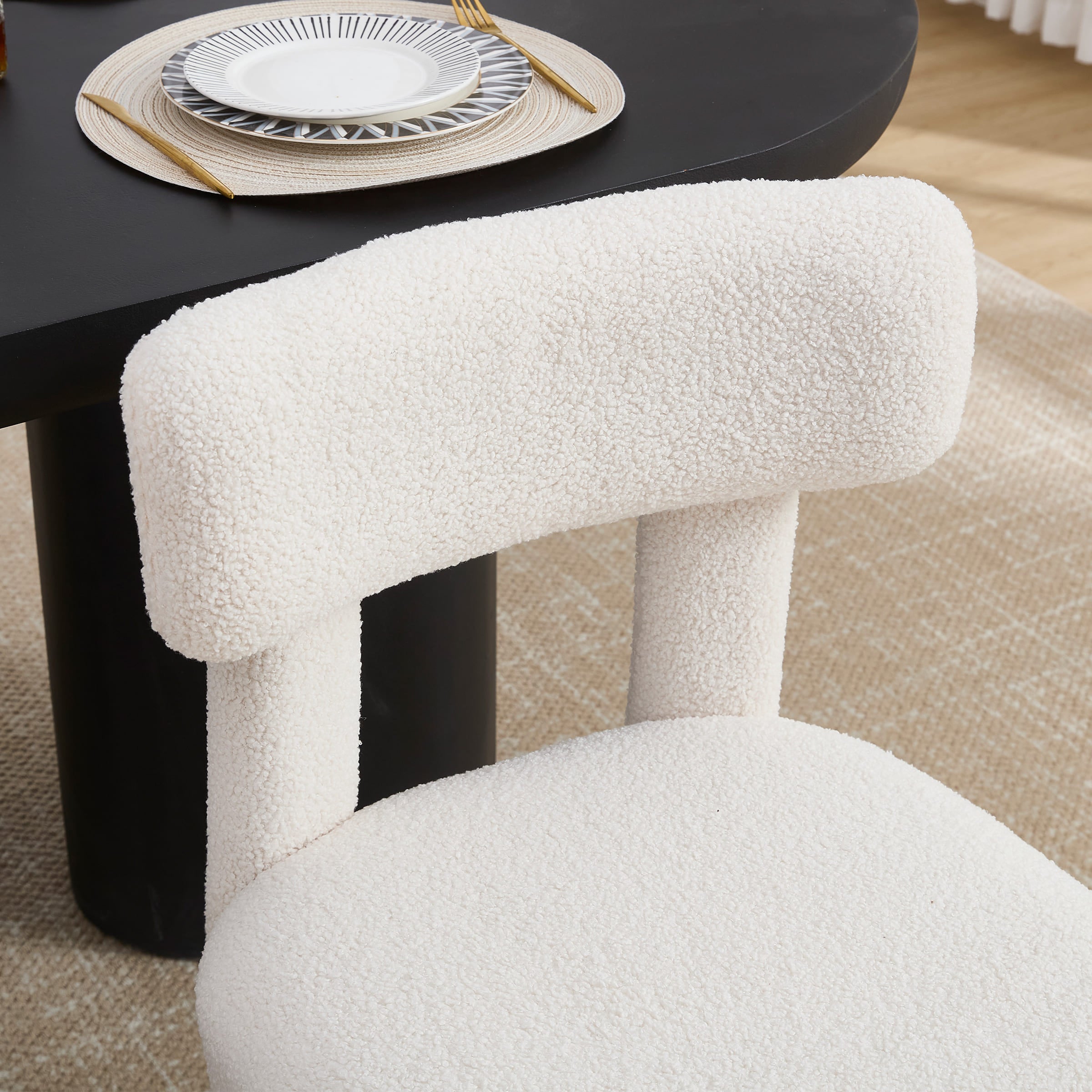 - Sleek minimalist design with smooth lines and plush lamb wool upholstery.