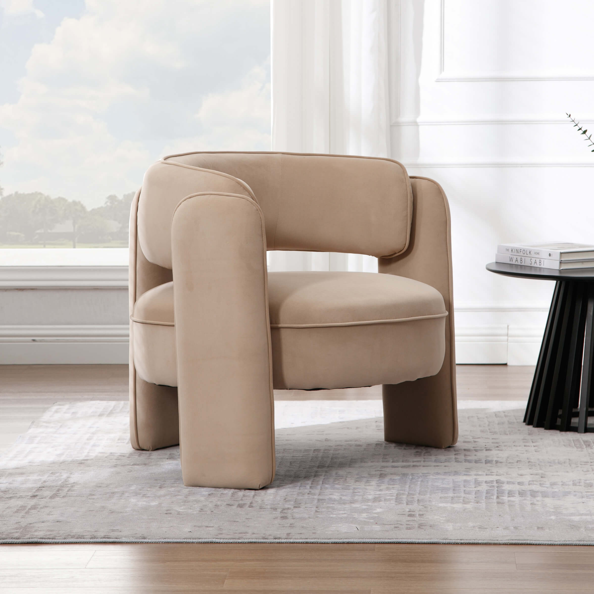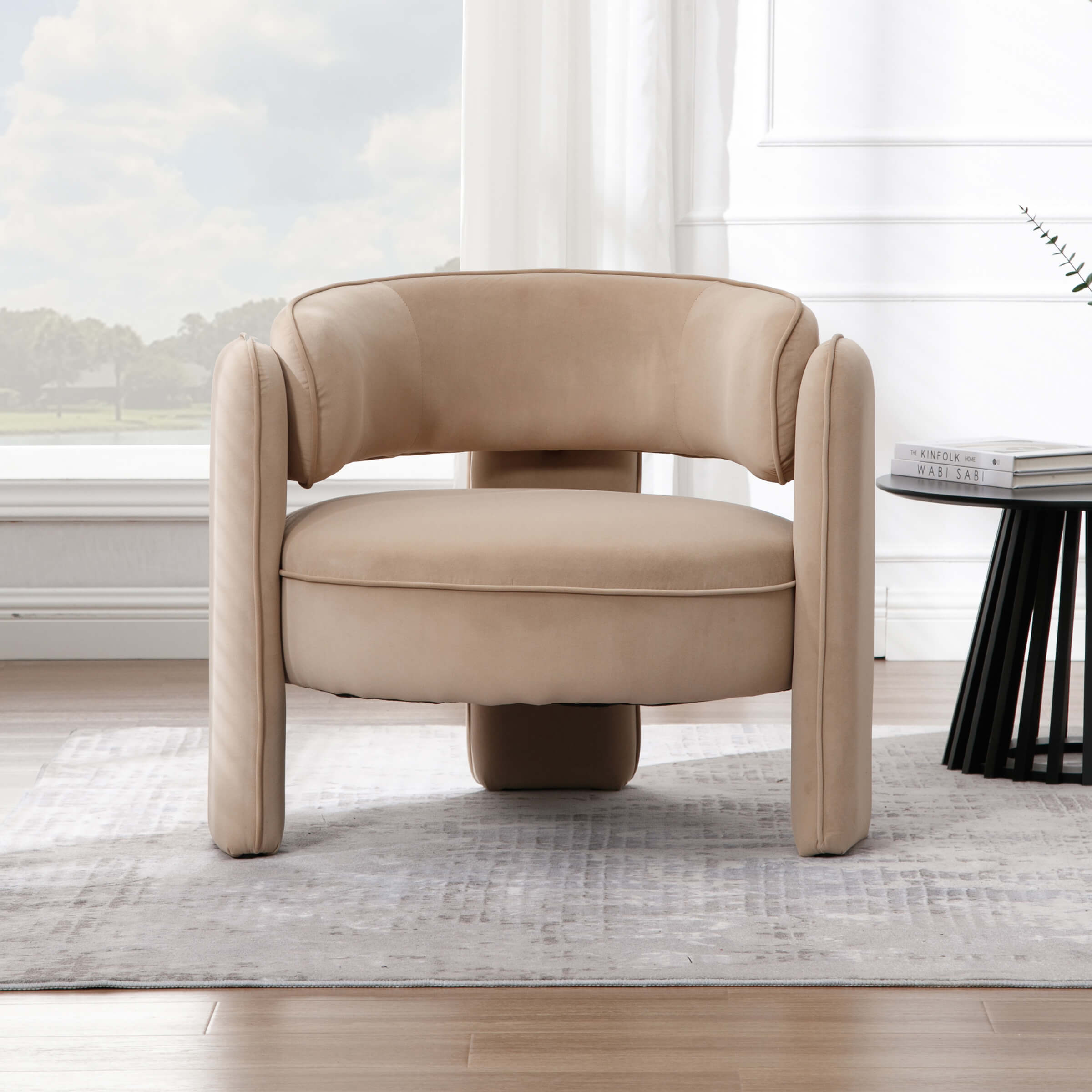 - 3 legs simple and upholstered modern design, suitable for various styles of decor.