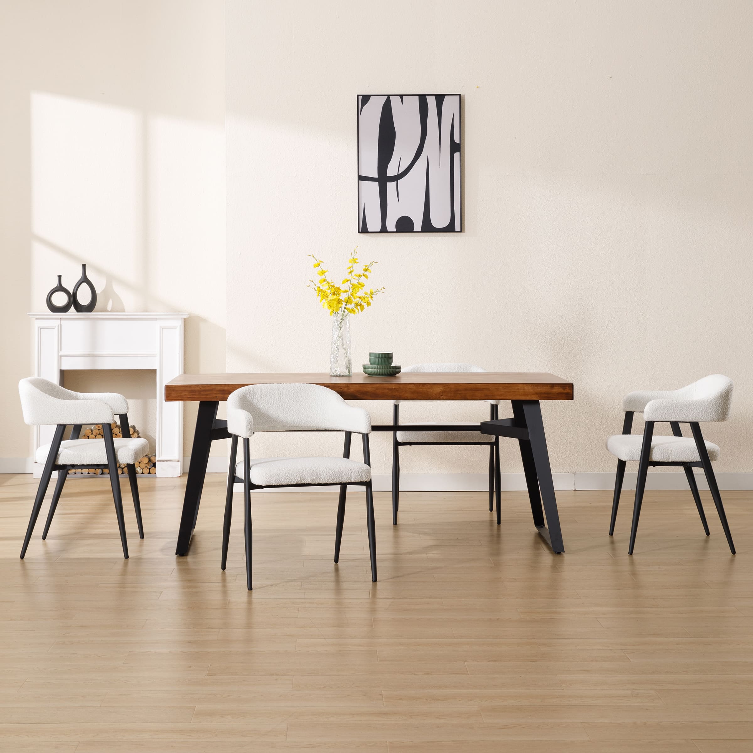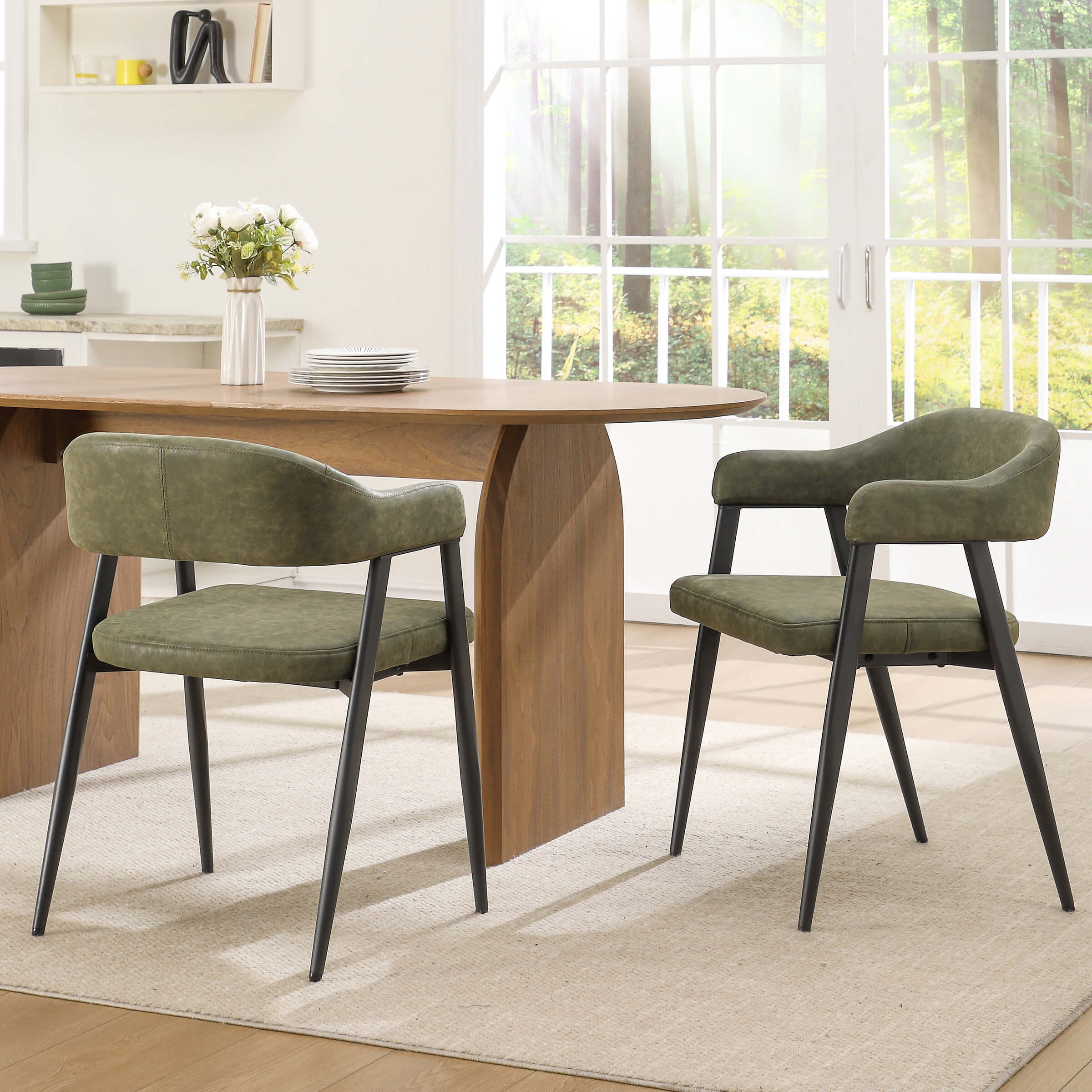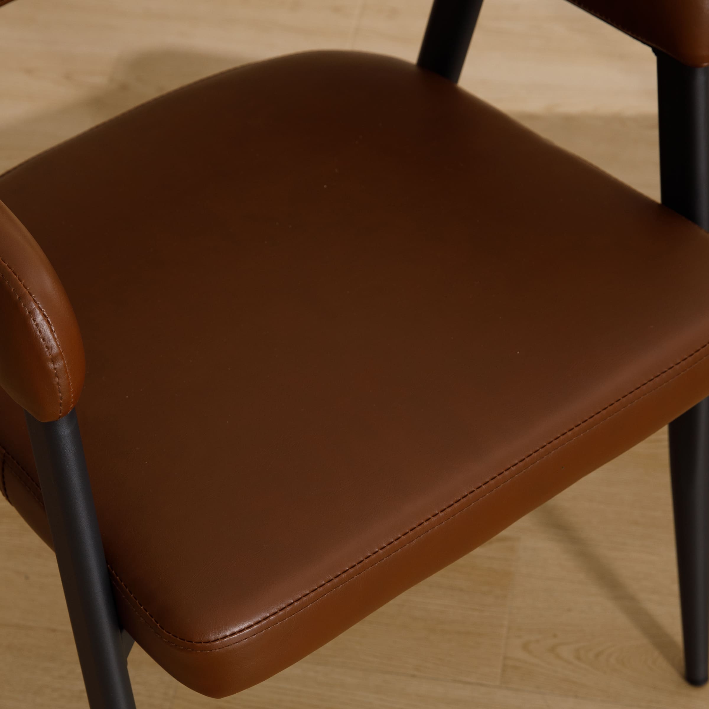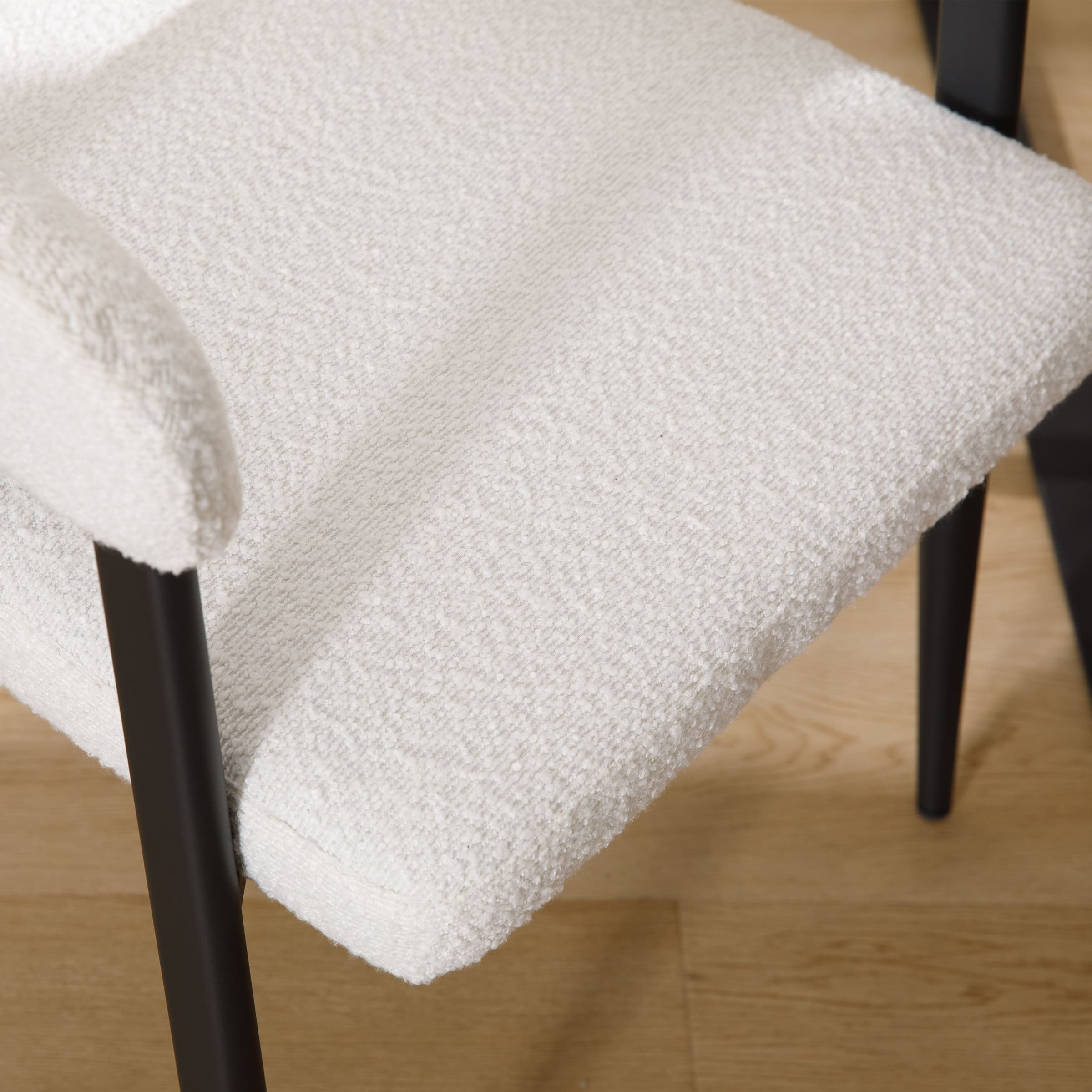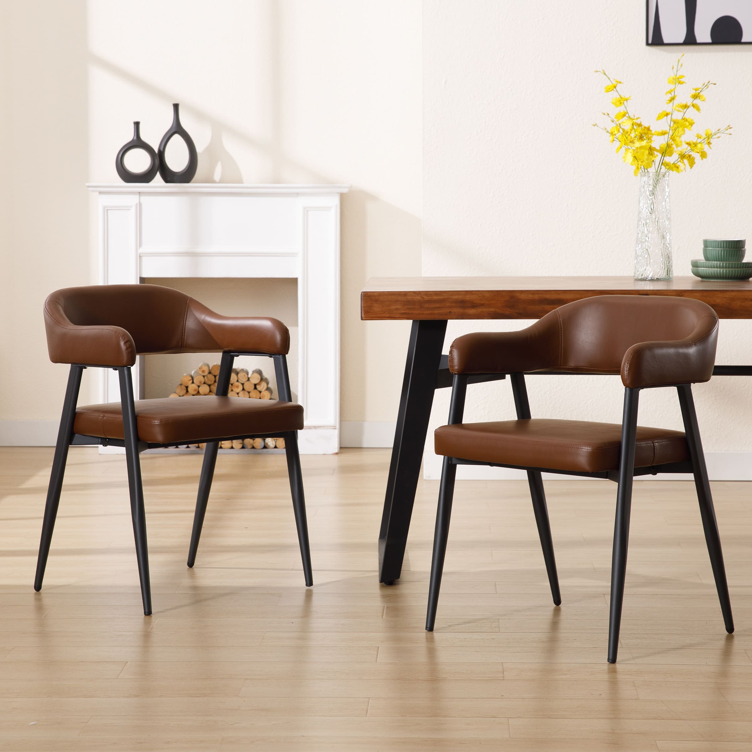- Mid-century style with curved open back and eight-legged black iron frame.