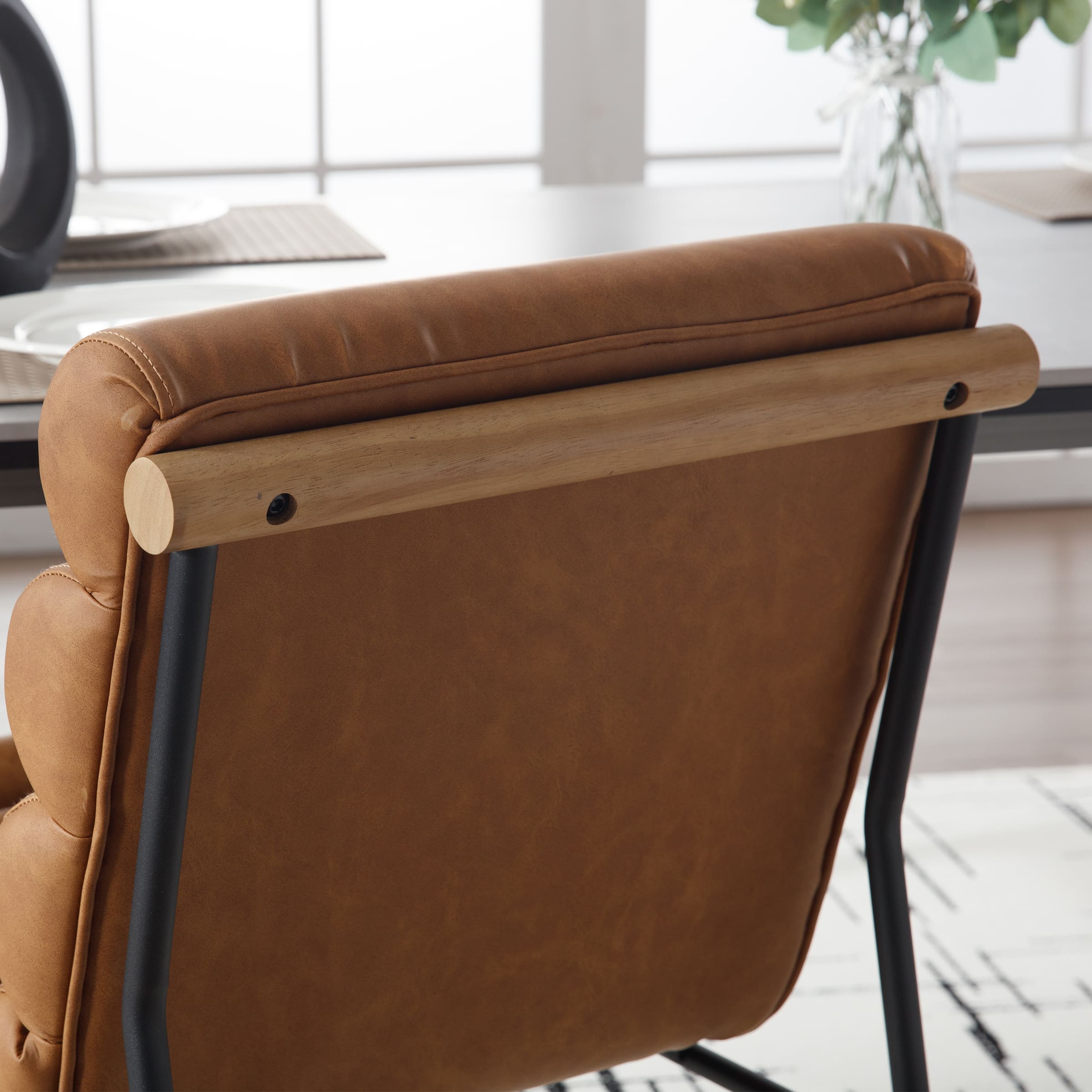 - Tufted back and cushion offer a cozy and stylish dining room look.