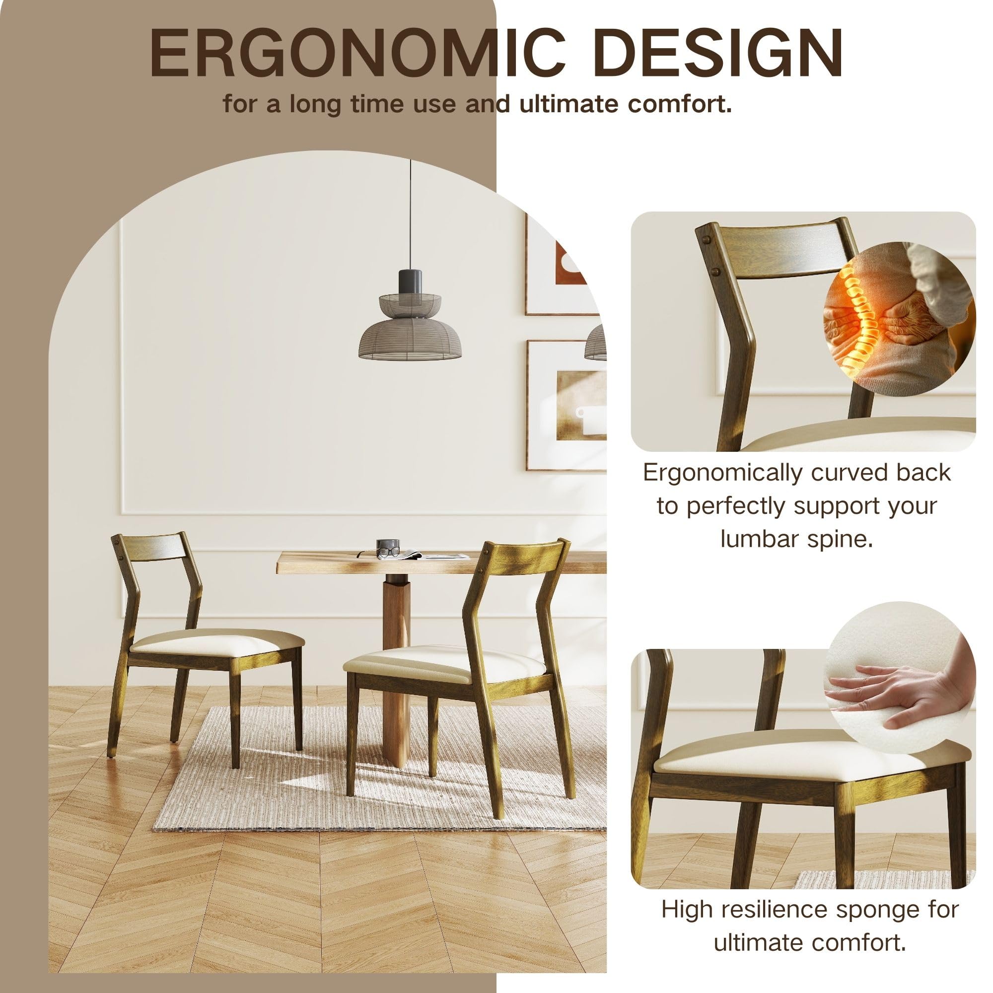 - Crafted from solid wood with a reinforced frame, each chair supports up to 300 lbs for lasting durability.