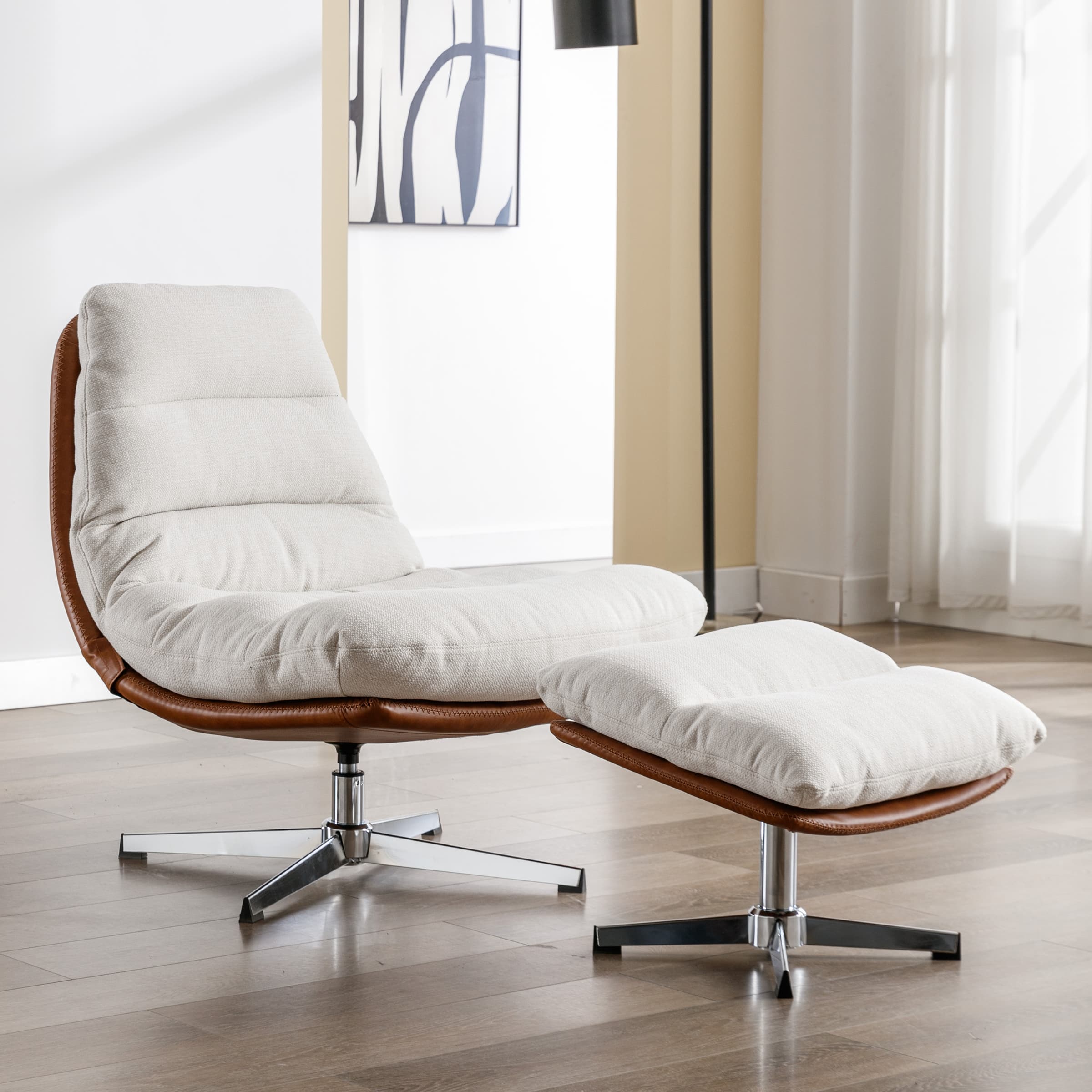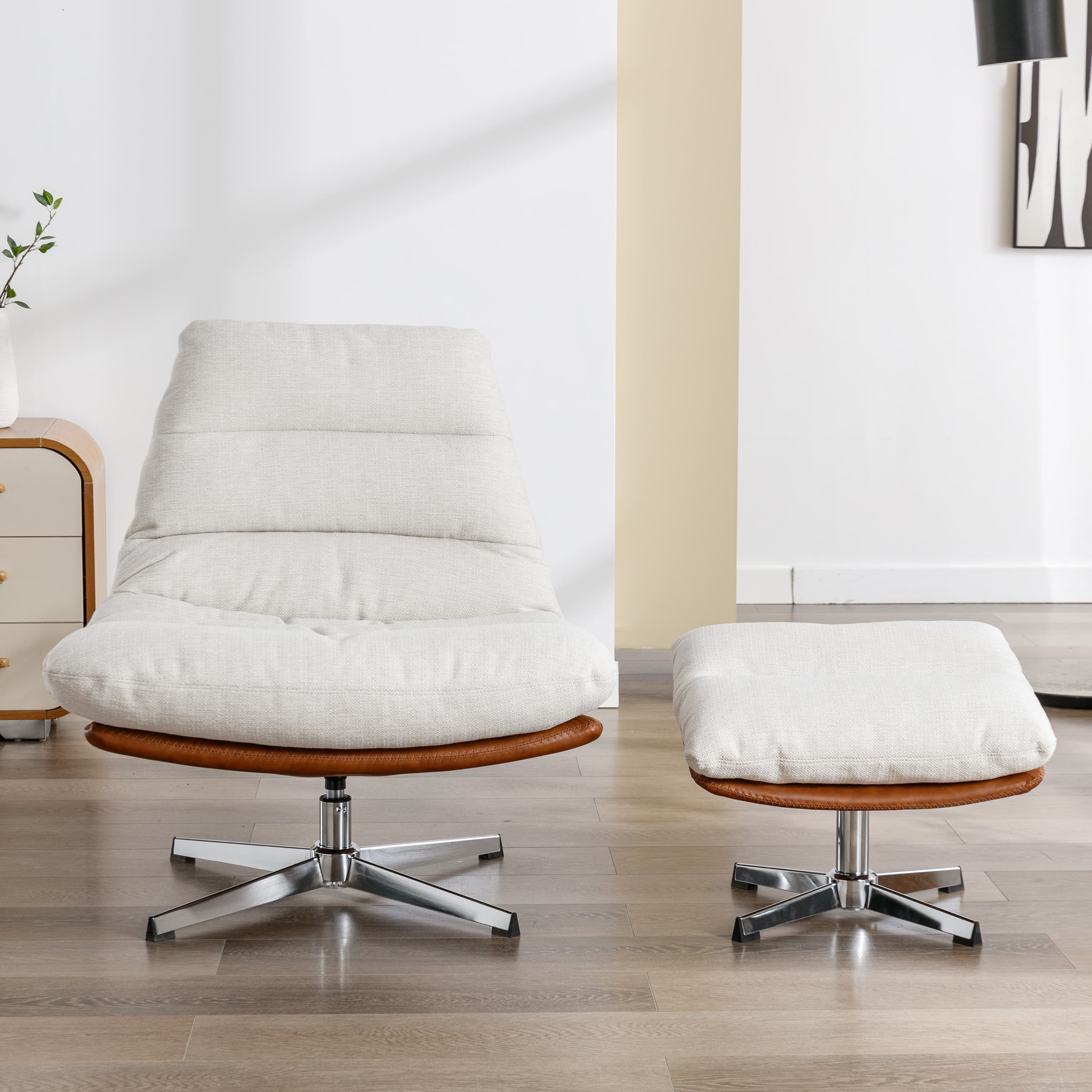 Stylish Swivel ChairPractical OttomanThickly Cushioned Reinforced BackrestProduct Dimensions