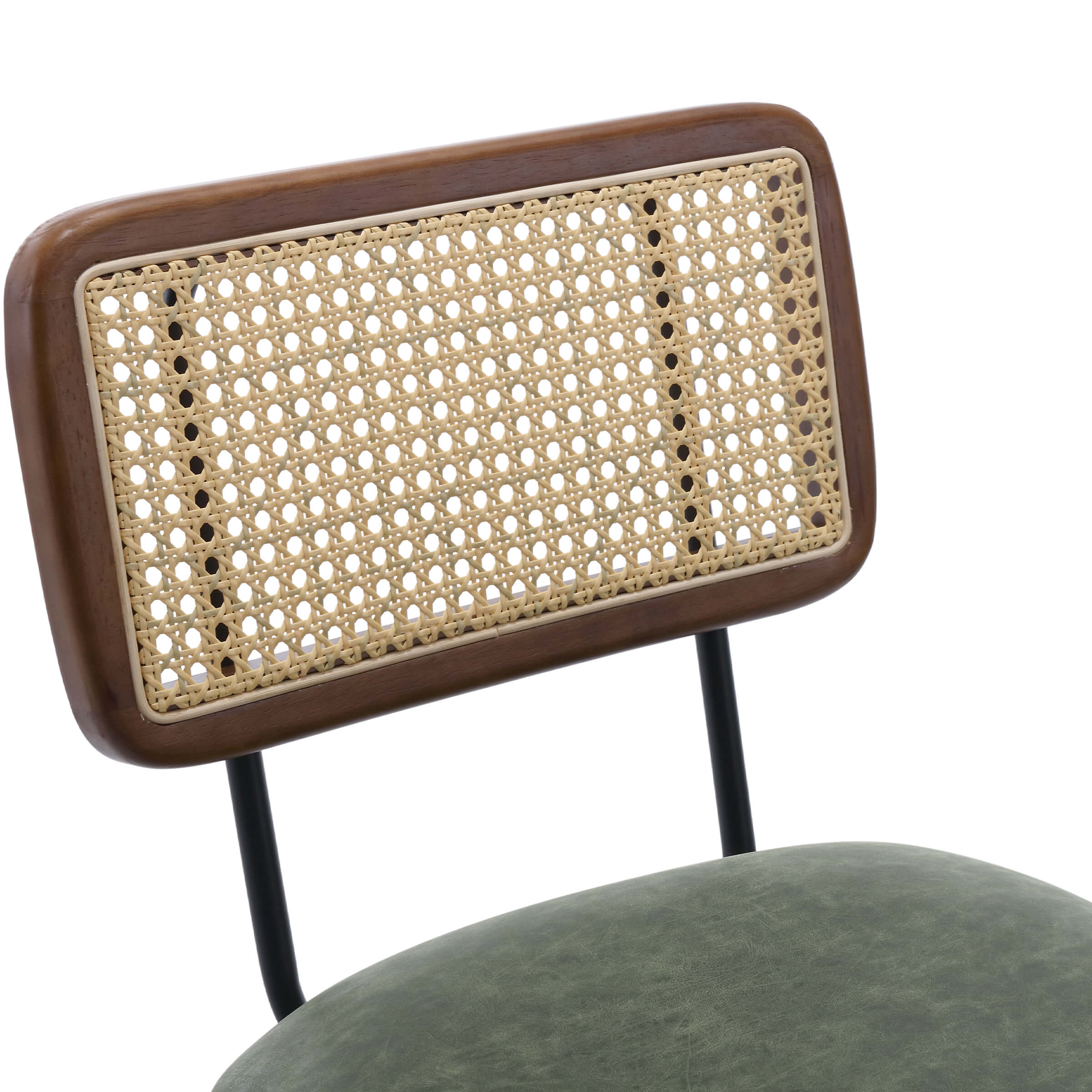- Mid-century cane back design adds natural charm and style.