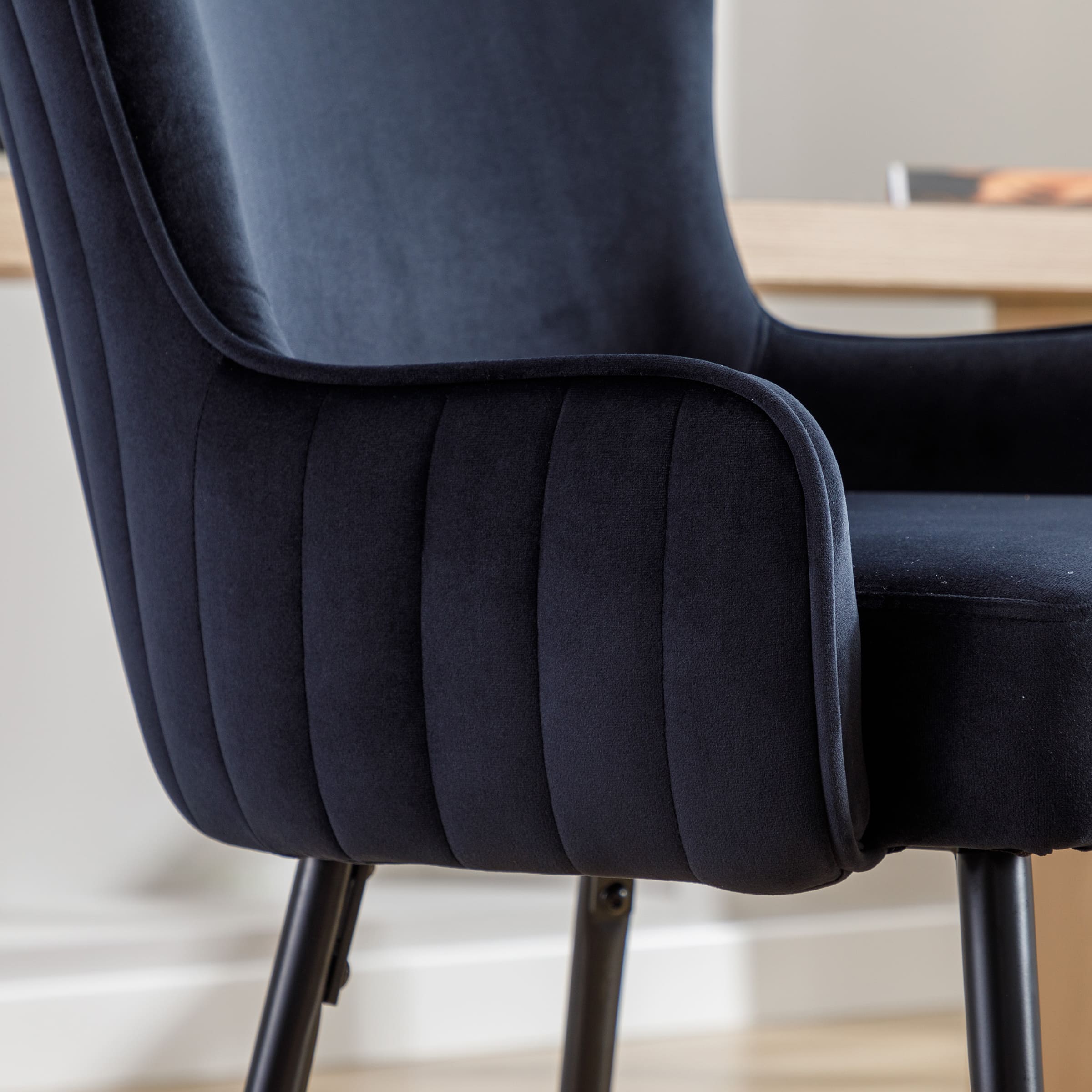 - Tufted wingback design with soft velvet for stylish comfort.