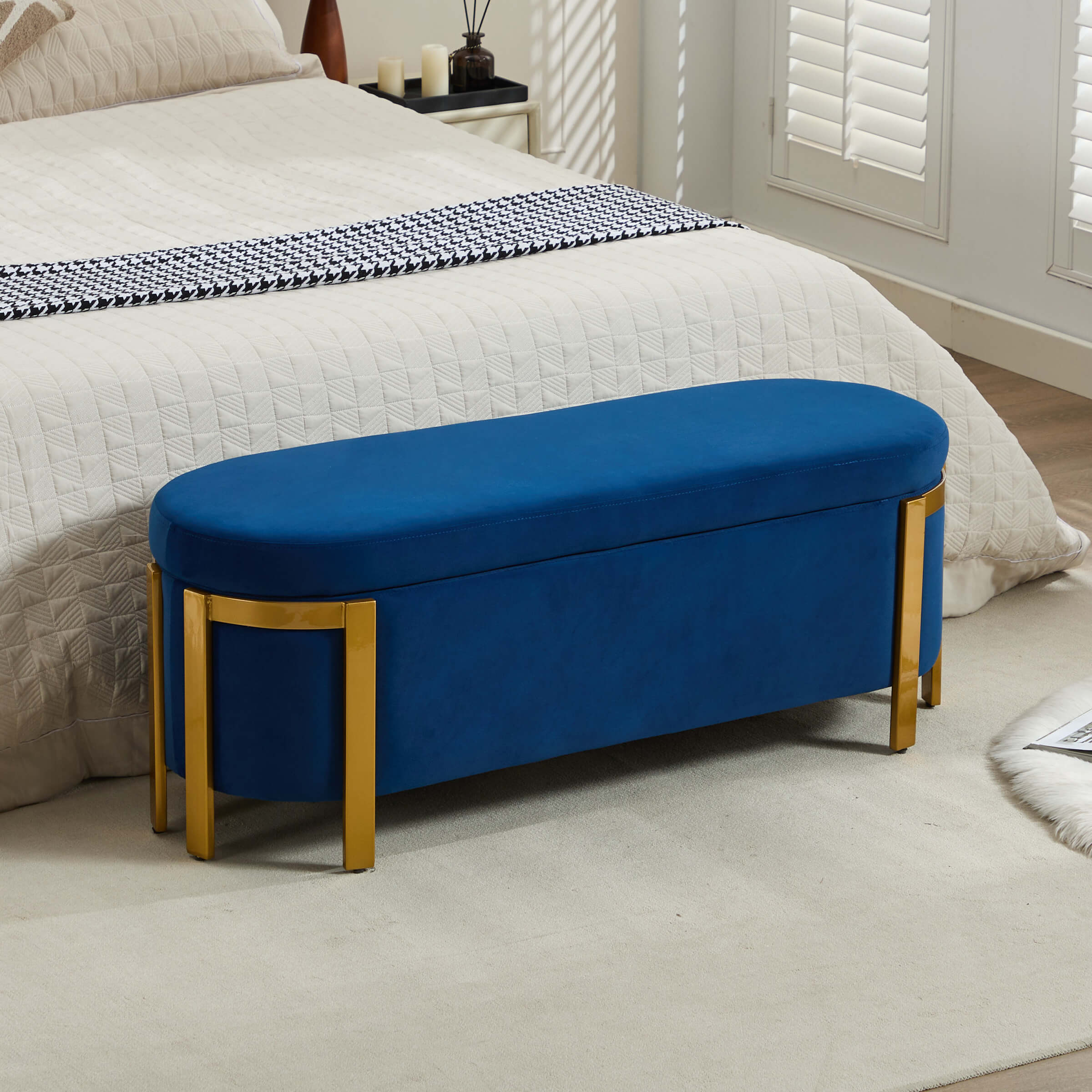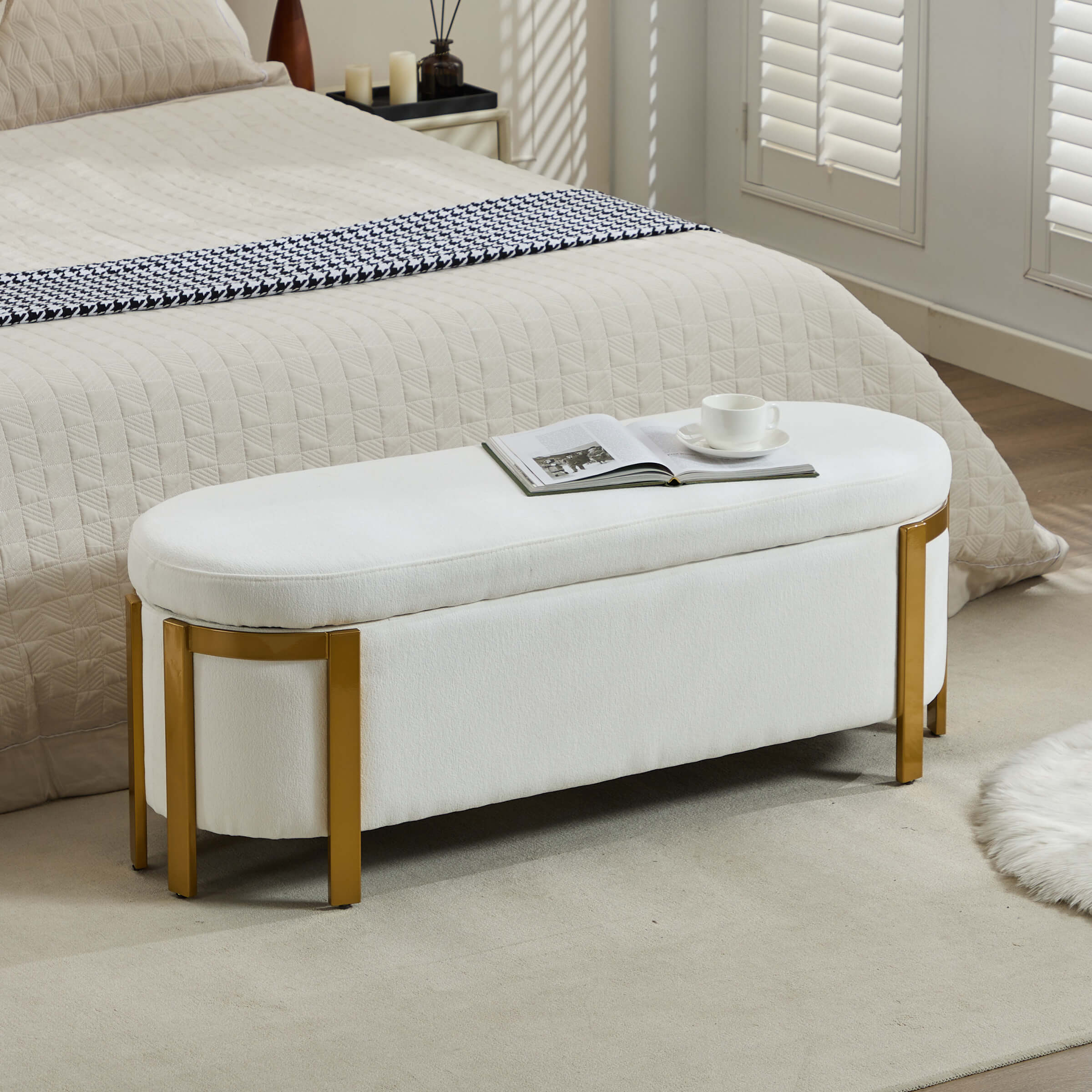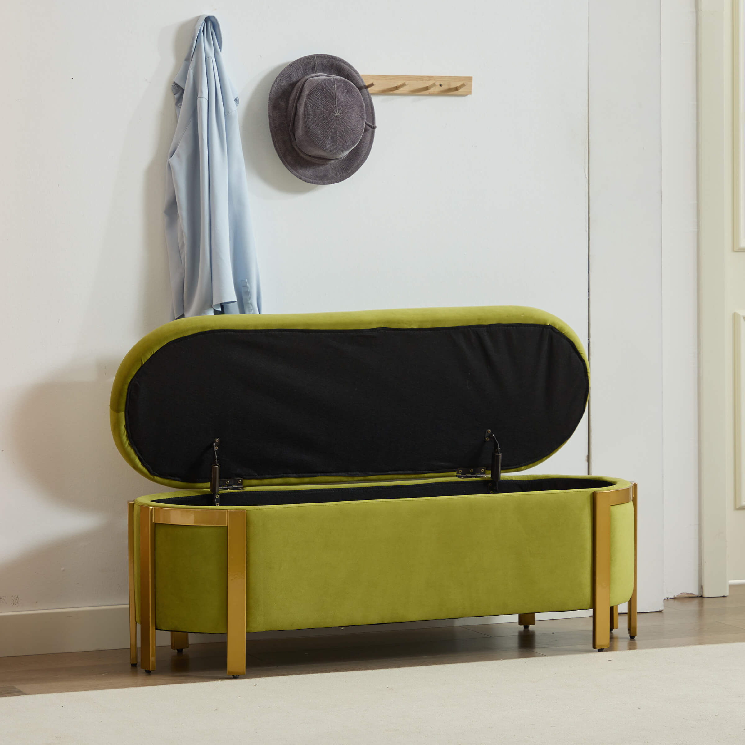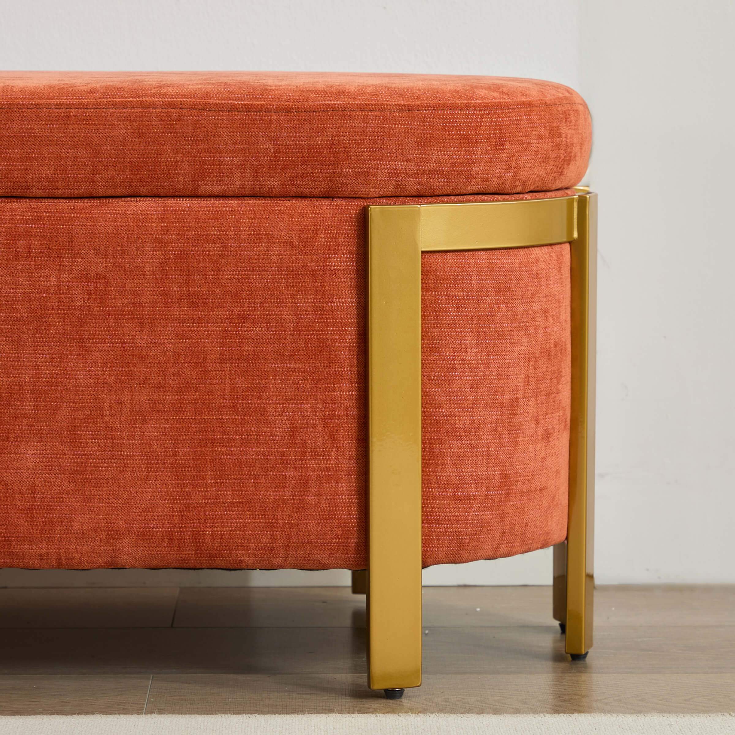 Versatile UsePlushly UpholsteredSafety Hinge & Gold LegsStorage &SeatingProduct Dimensions