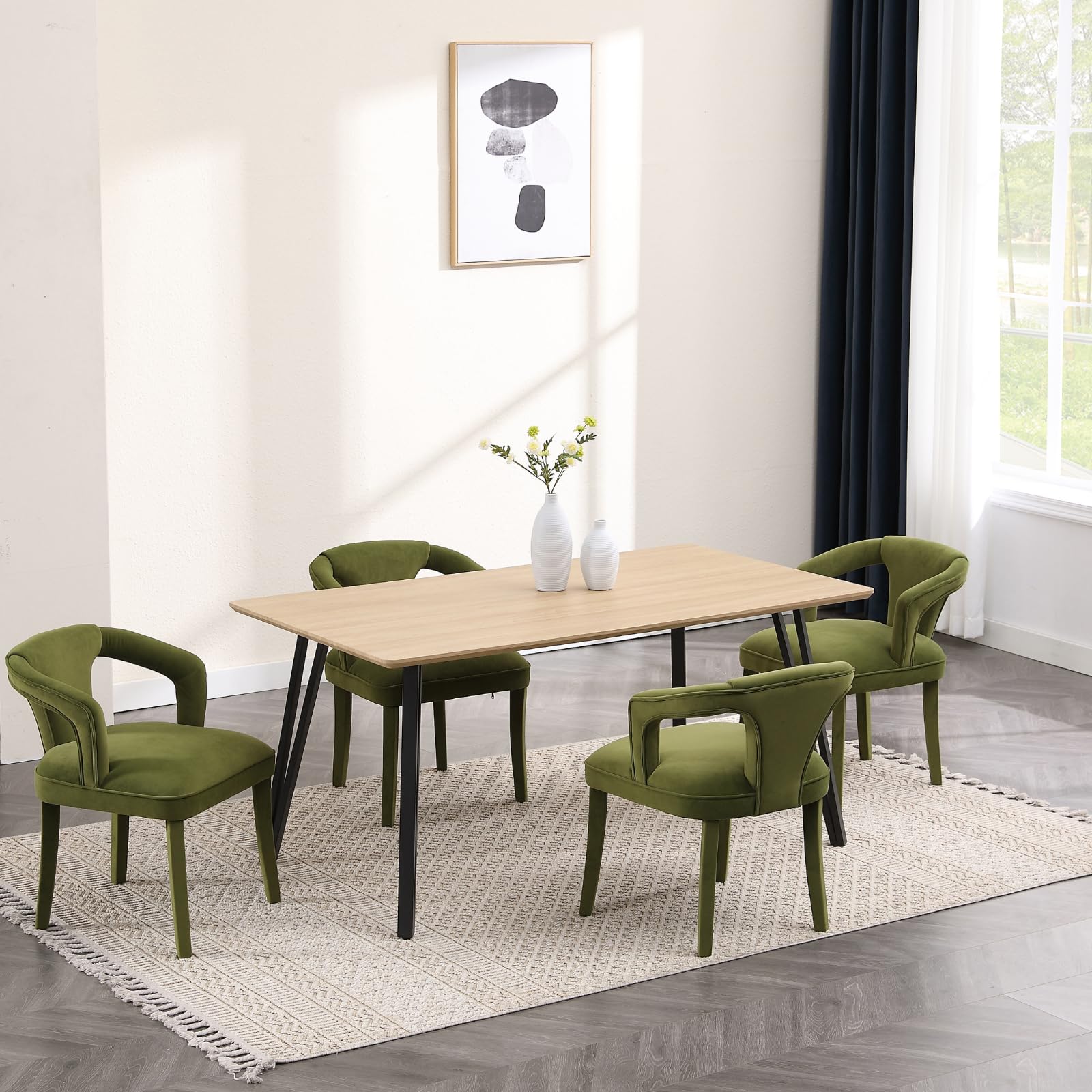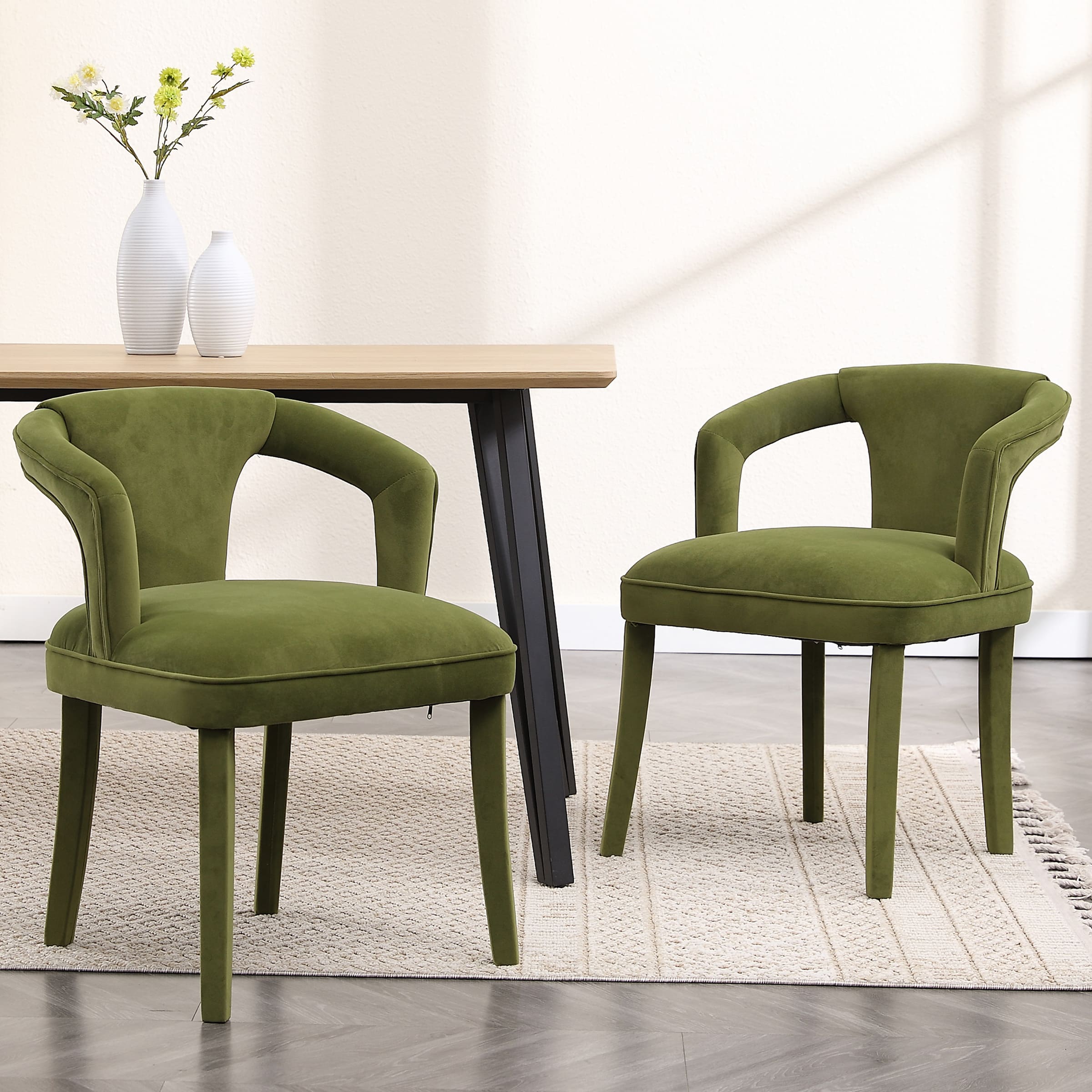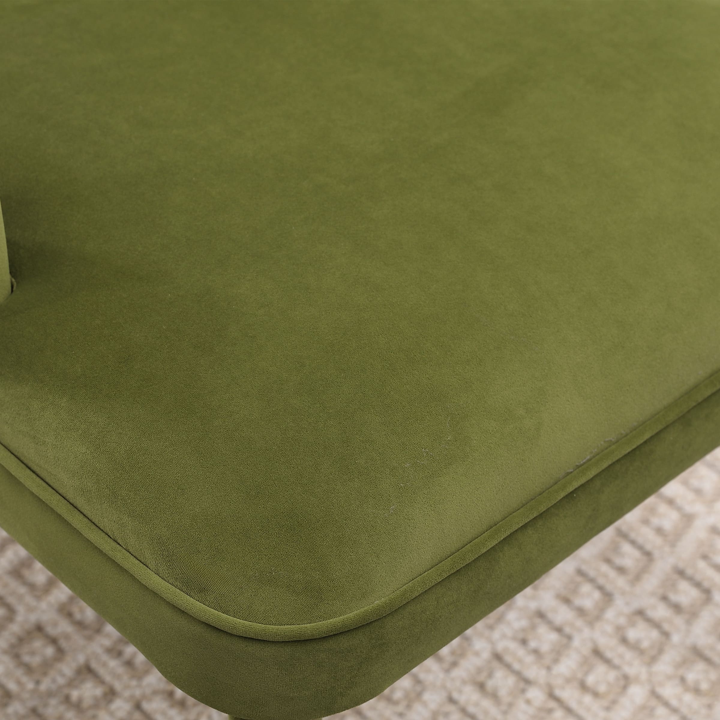- Velvet upholstery paired with color-matching legs adds a luxurious, contemporary feel to any space.