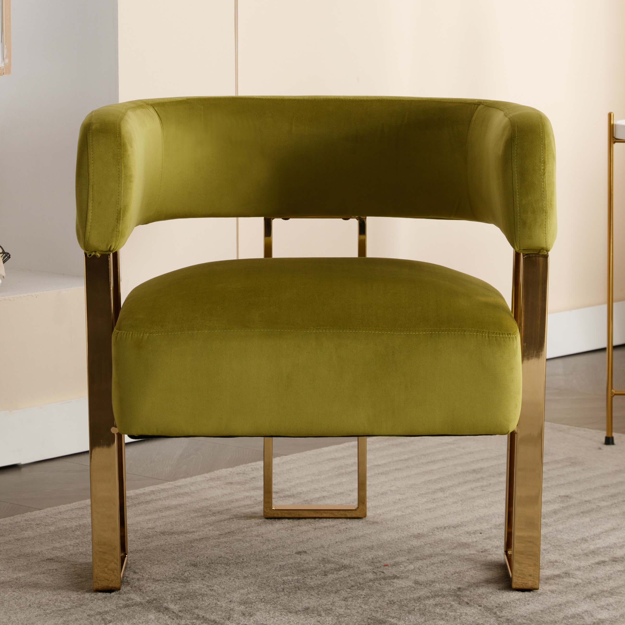 Modern Barrel ChairSoft and ComfortableGold-Colored Metal LegsPremium Boucle FabricProduct Dimensions