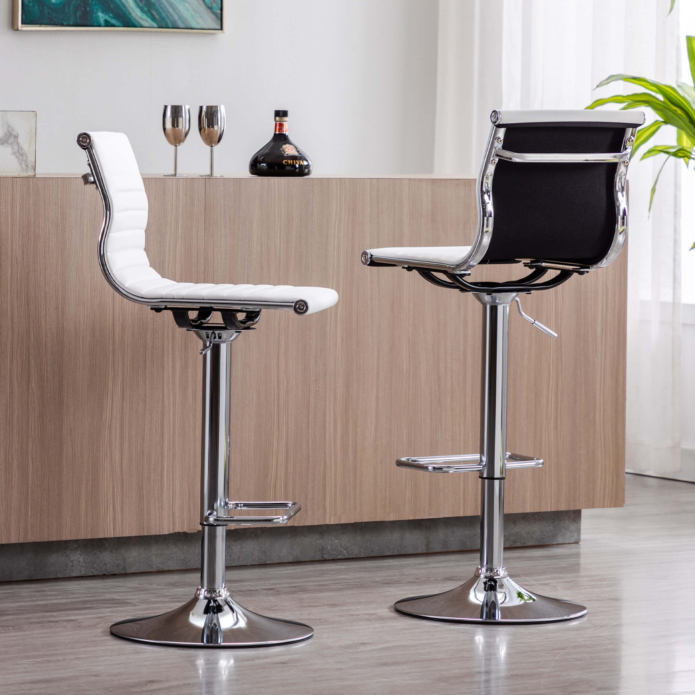 - PU leather with curved design adds modern style.